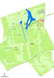 The maze was added in the 19th century (before 1829), as were some other buildings in the park like the stables. A first beer garden opened around 1900 and was replaced with a newer building in 1933.[1]: 32–33