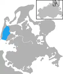 The Schaproder Bodden is a bodden on the Baltic Sea coast between the island of Hiddensee in the west and the islands of Rügen and Ummanz in the east. To the north the Schaproder Bodden is linked to the Vitter Bodden by the so-called Trog between the Fährinsel and the Stolper Haken of Rügen island. To the south the bodden transitions into the Kubitzer Bodden. A boundary would be the line between the southern tips of the Hiddensee (Geller Haken) and Ummanz or the link from the Geller Haken - Insel Heuwiese.