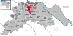 Scharnebeck is a municipality in the district of Lüneburg, in Lower Saxony, Germany. It is situated approximately 10 kilometres (6.2 mi) northeast of Lüneburg. The Scharnebeck twin ship lift on the Elbe Lateral Canal is in the municipality.