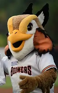 The mascot of the Schaumburg Boomers is Coop the boomer. Coop is portrayed by a person dressed in a prairie chicken costume.[7][8]