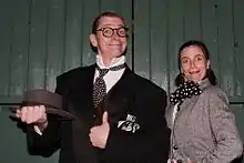 Schave & Reilly are a modern-day version of Vaudeville’s “baggypants comedians" who perform physical comedy.[1] The duo is the husband and wife team of Ben Schave and Caitlin Reilly who have worked together over ten years.[2] The pair collaborate to create original material, using the themes of love, relationship, sports, and the workplace to develop their shows . Schave & Reilly are based in Austin, Texas.[1] Trained at the schools of the Dell'Arte International School of Physical Theatre and the University of Texas, the couple met while learning their physical comedy craft at the Ringling Bros. and Barnum & Bailey Circus Clown College.[2] Both performers were influenced by performers such as Charlie Chaplin and by Ray Bolger, the scarecrow from The Wizard of Oz. Bolger was a vaudevillian dance performer whose work in the movie was derived from his vaudeville act.” [3]