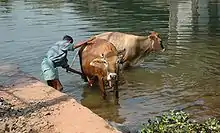 The definitive hosts of Schistosoma spindale are (mainly) ruminants and Schistosoma spindale cause intestinal schistosomiasis of ruminants (Artiodactyla, Ruminantia).[4] Surveillance for cattle schistosomiasis is generally inadequate and the literature is limited, but some idea of the problem can be gained from past small scale studies.[4] For a diagnosis there is need to find eggs of Schistosoma spindale in feces.[5] Surveys in Sri Lanka revealed prevalence of Schistosoma spindale of 31.2% (of 901 cattle),[5] whilst in Bangladesh a similarly high prevalence of 36% has been reported.[4][6] More recently, in Kerala South India, prevalences have been reported up to 57.3% in cattle, 50% in water buffalo (Bubalus bubalis) and 4.7% in goats.[4][7] The prevalence of Schistosoma spindale in the animals depend on the diagnostic test employed. Thus, it was as low as 10–30% by faecal examination (again low if egg detection method is employed and high if hatching method is followed) with as high as 80–95% by examining mesentery of the animals, for alive schistosomes, during post mortem (Agrawal MC 2012. Schistosomes and schistosomiasis in South Asia. Springer (India) Pvt, Ltd, New Delhi). Schistosoma spindale was found causing an outbreak in cattle in Maharashtra leading to heavy mortality with symptoms similar to Rinder pest (Kulkarni HV, Rao SR and Chudhari PG 1954. Unusual outbreak of schistosomiasis in bovines due to Schistosoma spindale associated with heavy mortality in Bombay state. Bombay Veterinary college Magazine 4: 3–15).