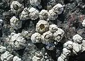 The typical mussels of the Wadden Sea are the common cockle (Cerastoderma edule) and the blue mussel (Mytilus edulis). While the common cockle is omnipresent, wild growing blue mussels are less common than in the southern Wadden Sea. They suffer from the expansion of the Pacific oyster which benefit from the warmer winters.[15] The sand gaper was probably introduced by the Vikings from America; the American piddock arrived at the end of the 19th century, while the appearance of the Atlantic jackknife clam in the Wadden Sea is known since 1976.[20]