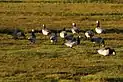 Eelgrass is the only flowering plant in the Wadden Sea which is capable of living under water. In 1930 most of the eelgrass in the Atlantic Ocean was killed by an epidemic. The eelgrass stocks haven't regenerated since. The plants are mainly located in the northern part of Schleswig-Holstein’s Wadden Sea and cover an area of 6000 ha. Compared to 705 ha in Lower Saxony and 130 ha in the Netherlands, it is quite large. Also in contrast to the worldwide trend of decreasing eelgrass stocks, the stocks in the Frisian Wadden Sea area are increasing. During the maximum spatial extent in August eelgrass covers up to 13% of the North Frisian Wadden Sea.[14] Eelgrass areas provide habitats for marine organisms and are an important food source for barnacle geese (Branta leucopsis).[15]