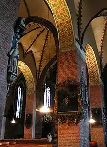 In 1134, the Danish King Niels’ headless body was laid out in St. Peter's Cathedral after it was pulled from the Schlei in the nets of local fishermen. The monks who attended the corpse heard strange noises and thought that the spirit of King Niels was wandering about in the church. As a result, the king's body was taken to Gottorp and stuffed into a boggy grave. Someone hammered a stake through Niels' chest to keep him there. Legend has it that King Niels' still haunts the cathedral, and that he still hunts across the moors and forest of Schleswig with his hounds.[1] King Frederick I of Denmark is entombed in the cathedral.