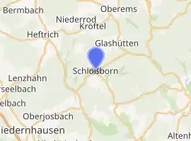 Schloßborn lies within the Hochtaunus Nature Reserve, to the west of the 687-meter Glaskopf, watered by the springs in the Weiherbach Valley and the neighbouring Silberbach Valley. The village is surrounded by low mountains. The Steinkopf (570 meters), the Eickkopf (563 meters) and the Atzelberg (507 meters) lie to the south. To the southwest, between the village and the Dattenbach Valley, are the Platte (455 meters) and Spitzeberg (450 meters) and, to the west, the Butznickel (462 meters).[2] Schloßborn is located on a Landesstraße, about three kilometers from Bundesstraße 8, connecting Frankfurt and Cologne.[2]