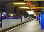 With its visible concrete walls partially covered by dark blue, orange and yellow plastic panels, Schloßstraße is an example of the 1970s pop-art design. Opened in 1974 by Schüler/Witte, it was planned to be a transfer station between U9 and the to-be-built