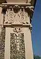 Close-up of coats of arms (left: Baden-Baden, right: Saxe-Lauenburg) and pebble dash used on walls