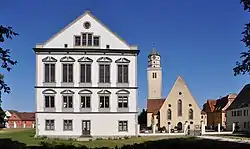 Schloss Oettingen was built between 1679 and 1687.[1][2] Construction was overseen by Karl Engel, a brother of the Prince-Bishop's master builder, Jakob Engel. It was built in the Baroque style.[1] The palace has served as a family seat for the House of Oettingen-Spielberg, a German noble family and cadet branch of the House of Oettingen, and is still owned by the family.[1] Schloss Oettingen is located in Oettingen in Bayern, in the Donau-Ries district of Swabia, Bavaria.[3][4]