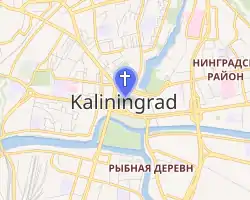 Alexander Krause designed images of Fides, Spes, Caritas, and Justitia on the pillars' ornamental consoles in 1606. The stellar vault contained stucco by Hans Windrauch from 1589, while the ceiling stucco was by Matthias Poertzel from 1706 to 1708.[3] The church's Baroque high altar, one of the first in East Prussia, was decorated with wooden sculptures, possibly by Poertzel in 1710. The organ was designed by G. H. Trost and Adam Gottlob Casparini in 1732.[11] The church was also decorated with the arms of the Order of the Black Eagle.
