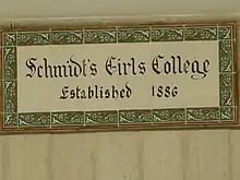 - "Home." Schmidt's Girls College. Retrieved on 23 January 2015. "Student at Schmidt's Girls College today, leader tomorrow!"