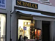 Schmuck is a surname of German origin. As a noun, it means jewelry; as an adjective, it means neat in the sense of clean, tidy, or having a simple elegance. The name is commonly seen on signs and billboards in Germany and Austria related to the merchandising of precious jewelry. The Schmuck family name has been traced to the birth of Christian von Schmuck in 1370. In 1624, an Armorial Patent, or Coat of Arms, was granted at Rattenberg by Archduke Leopold V of Austria.