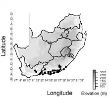 The genus Tetraria once included the southern African Schoenus; however, we now know that the two groups are evolutionary distinct based on molecular and morphological differences.[5] Several species of Epischoenus and the southern African Tetraria were transferred into Schoenus to ensure that this group of sedges is monophyletic (i.e. the genus only has closely related species).[5] The southern African Schoenus can be distinguished from Tetraria species in the field by the absence of reticulate sheaths at the bases of the flowering stems and their lack of stem leaves.[5]