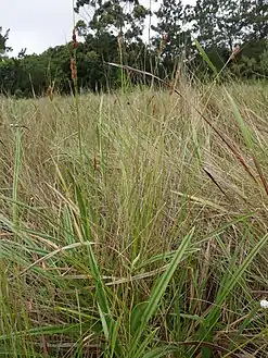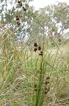 Schoenus limosus is a species of sedge endemic to the KwaZulu-Natal and Eastern Cape Provinces of South Africa.[1] It is predominately a species of wet grasslands, which explains its common name (Muddy Veldrush).[1]