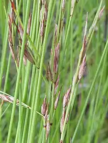 Schoenus schonlandii is a species in family Cyperaceae, tribe Schoeneae, which is a clade that includes genera such as Costularia, Gahnia, Lepidosperma, Oreobolus and Tetraria.[1][3][4] Other species in the Epischoenus group of southern African Schoenus are likely to be the most closely-related species to S. schonlandii based on morphological similarities among species.[1]