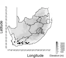 Schoenus submarginalis is a species of sedge found in mountainous regions of the Western Cape and Eastern Cape Provinces of South Africa.[1] Its distribution ranges from Aynsberg in the west to the Baviaanskloof area in the east, growing at elevations over 600 m on coarse substrates.[1]