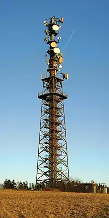 The Schomberg Observation Tower is a German steel lattice observation tower that was built in 2005 and was finished in 2006. Used for observation and mobile phone communication, the tower can be visited daily during the summer months and also in winter, depending on the weather. Visitors can view the surrounding Sauerland region.