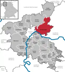 Location of Schonungen within Schweinfurt district | |
