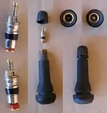 The Schrader valve (also called American valve[1]) is a type of pneumatic tire valve used on virtually every motor vehicle in the world today. The Schrader company, for which it was named, was founded in 1844 by August Schrader. The original Schrader valve design was invented in 1891, and patented in the United States in 1893.[2]