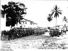 The companies were assigned to 49 garrisons in Kamerun and consisted of 61 officers, 23 physicians, 23 civilian administrators, ammunition technicians, 98 German NCOs and 1,650 African enlisted ranks for a total personnel count of 1,855.[9]