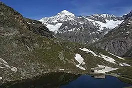 The Schwarzsee (German for "Black Lake") is a small lake near Zermatt in the canton of Valais, Switzerland. It is located below the Matterhorn next to the mountain ridge (2,583 m (8,474 ft)) and to the cable car station of the same name at an elevation of 2,552 m (8,373 ft).