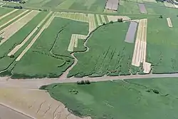 ![]() Aerial view: the Schweiburg (horizontally from the left to the right) branching of the Weser (in the lower left corner) | |