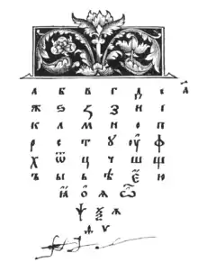 The final version of the Cyrillic script and some of the letters commissioned by Fiol was cut out by student of Kraków University, Rudolf Borsdorf from Braunschweig who quickly supplied Fiol with 230 completely finished and adjusted letters and superscript icons (Ludolfus Ludolfi de Brunszwyczk).[5]