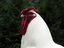 The Schweizer breed was created in 1905 by Alfred Weiss, who cross-bred various chicken breeds, mainly white Orpingtons and Wyandottes, to produce a good dual-purpose chicken.[2] It shows some similarity to the Deutsches Reichshuhn, which was developed at about the same time.[3]