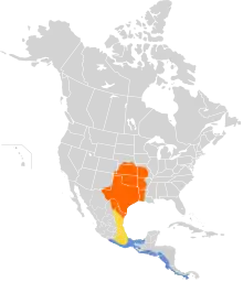 Their breeding habitat is open shrubby country with scattered trees in the south-central states of Texas, Oklahoma, Kansas; western portions of Louisiana, Arkansas, and Missouri; far eastern New Mexico; and northeastern Mexico. Reported sightings record occasional stray visitors as far north as southern Canada and as far east as Florida and Georgia. They migrate through Texas and eastern Mexico to their winter non-breeding range, from southern Mexico to Panama. Pre-migratory roosts and flocks flying south may contain as many as 1000 birds.[4]