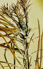 Scleroderris canker (American name), or Brunchorstia disease (European name),[1] Gremmeniella abietina, is a species of fungal diseases infecting coniferous forests. The main symptom is the death of the needles, leading to the death of the tree.[2] In the forest industry, fighting off an infection of Scleroderris canker is usually not cost-effective. Clearing is often preferred over fungicidal methods, as the latter is harmful to other living organisms.