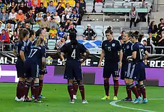 The team followed this up by qualifying for their first World Cup finals tournament in 2019.[17] Following their qualification, the Scottish Government announced they would provide funding to allow all the players to train full-time in the lead up to the World Cup, a welcome announcement as several players do not play professionally.[18] Their final home match (against Jamaica) before the 2019 World Cup saw a record attendance for the national team of 18,555.[19] Claire Emslie scored Scotland's first World Cup goal, netting in a 21 defeat against England on 9 June.[20] After losing their second game, 21 against Japan, Scotland needed to win their third game against Argentina to qualify for the last 16 as a third-placed team.[21] They appeared to be heading for qualification when they took a 30 lead, but they conceded three late goals to draw 33 and exited at the group stage.[21]