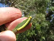 During a recent outbreak of S. paludicola in 2013 on Hawaiʻi Island, larvae were found to feed on isolated populations of the invasive tree Falcataria moluccana[1] near Akaka Falls State Park. Laboratory feeding trials of these larvae showed that they could complete their development at the same rate on both the normal host (Acacia koa) and the invasive tree (Falcataria moluccana). Three other exotic tree species, Acacia confusa, Prosopis pallida, and Leucaena leucocephala were not suitable host plants and all the larvae tested on these species died after 5 days of feeding.[1]