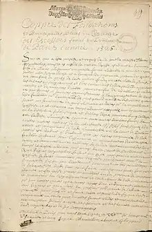 At some time not long before 1323 King Robert the Bruce of Scotland sent an embassy including the Earl of Moray and his kinsman David de Moravia (1299–1326), the Bishop of Moray, "to conclude a treaty of 'confederacy' " renewing the auld alliance between Scotland and France.[1] A passionate benefactor of religious learning, the Bishop in 1325 endowed the lands of Grisy-Suisnes, just outside Paris to be used as a source of funds for students from his parish studying at the University of Paris.[2] The Collegium Scoticum came into existence in 1325 and its foundation was confirmed by Charles le Bel, King of France, in August 1326.