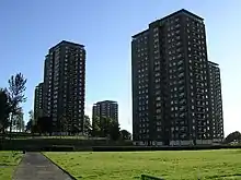 Scotstounhill is a small area situated in western Glasgow, between south Knightswood and Scotstoun. Housing is mainly in a terraced or villa style,[1] although several high rise flats (also known as tower blocks) can be found in the area[2][3] (originally six at Kingsway Court, two since demolished in the 2010s and the others renovated).[4][5] These were built near to the site of the Scotstoun House mansion.[6] [7][8]