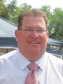 Buchholz was originally a member of the Queensland Nationals, serving as a delegate to state conference from 2007 and as chief of staff to the party's Senate leader Barnaby Joyce.[1] He stood as a Senate candidate for the party at the 2007 federal election, placed sixth and last on the joint Coalition ticket.[6] He was later appointed chairman of the transition action committee that conducted due diligence on the creation of the Liberal National Party of Queensland (LNP) in 2008 as a merger of the Nationals and Liberals.[2]