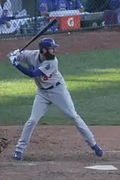 In 2015, he hit .239/.317/.383 in 96 games with six homers and 30 RBI.[1] He battled left mid-back and right wrist issues for much of the season, which negatively affected his performance.[17][18] Following the season, he agreed to a one-year, $1.225 million contract with the Dodgers for 2016, avoiding salary arbitration.[19]
