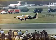 The Scottish Aviation BullFinch taking off at Farnborough