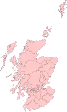 Each constituency was entirely within a county or a grouping of two or three counties, or was if the cities of Aberdeen, Dundee, Edinburgh and Glasgow are regarded as belonging, respectively to the county of Aberdeen, the county of Angus, the county of Midlothian and the county of Lanark.[1]