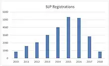 SLPs sharply increased in popularity between 2016 and 2017, with a 430% increase in registrations in that time.[4]