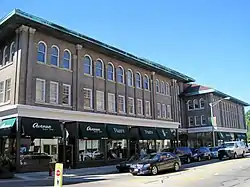 Oak Park's Masonic lodges were among the building's first tenants.[4] After the Masons vacated the premises, the building was sold to Gilmore's Department Store. The department store used the building from 1930 until it closed in the 1970s.[3][4][5] After Gilmore's department store closed, the village of Oak Park bought the building to save it from demolition and contributed public money toward its restoration and renovation. Restoration work including removal of a black glass facade that Gilmore's had applied to the building.[3][5] The building is now known as the Scoville Square building and houses retail business on the ground floor and offices on its upper floors.[4][5]