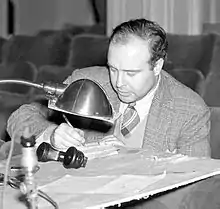 Welles admired Mankiewicz, and had met him in New York in 1938[5]: 234 at the time of the Mercury Theatre's Broadway successes. In September 1939[6]: 244 Welles visited Mankiewicz while he was hospitalized in Los Angeles after a car accident, and offered him a job writing scripts for the Mercury Theatre's show on CBS radio, The Campbell Playhouse. "I felt it would be useless," Welles said later, "because of Mank's general uselessness many times in the studios. But I thought, 'We'll see what he comes up with.'" Mankiewicz proved very useful, particularly working with Houseman as editor,[6]: 240–242 and wrote five scripts for Campbell Playhouse shows broadcast between November 12, 1939, and March 17, 1940.[lower-alpha 1][7]: 98 Houseman and Welles were partners in the Mercury Theatre,[4]: 55 but when Mercury productions moved from New York to California the partnership ended and Houseman became an employee, working primarily as supervising editor on the radio shows.[8]: 88 In December 1939, after a violent quarrel with Welles over finances, Houseman resigned and returned to New York.[4]: 356 To Welles, his departure was a relief.[7]: 504–505 [9]: 235–236