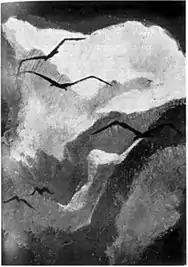 During the late 1950s, Ames continued to participate in group exhibitions in Chicago, including ones at the Art Institute (1957 and 1959), the Arts Club (1958 and 1959), and Cromer & Quint (1959).[17][35] The 1958 Arts Club show included a painting, "Dark Birds", which one critic called "powerful, richly toned" and which was reproduced in an article on Ames in the University of Chicago Magazine later that year.[30][35] A reproduction of this image is shown above, no. 4.