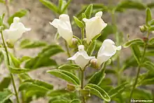 It is a small plant growing up to half a meter high, bearing small, white or yellowish snapdragon-like flowers which are said to smell of apples. The leaves are green and arranged oppositely on the erect stem.