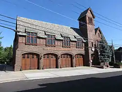 The Sea Cliff Firehouse is a historic fire station located at Sea Cliff, Nassau County, New York. The fire department was established in 1884, and the firehouse was built in 1931. It is a 1 1/2-story, Tudor Revival style brick building with ornamental half timbering. It has four engine bays with segmental arched openings and a steep slate roof with dormers. It features a bell tower topped by a slate gable roof.[2]