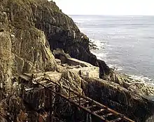 The terminus is situated some three-quarters of a mile away from the other end of the line. It opened as the outer terminus of the line in 1896, at which point the building was erected including tea rooms, bake house, fish store and seasonal living quarters for the staff. The zoo, created in the adjacent cove, had been a feature from 1893 and was the reason for the building of the line. The station closed at the outbreak of the Second World War; although the railway reopened in 1950, a landslip during the war years prevented the line being re-opened this far, and it was not until the restored line was extended in 1992 that the station re-opened, later receiving a replica station building in 2000.