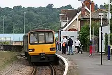 When the railway was privatised in 1997, local services were franchised to Wales & West,[21] which was succeeded by Wessex Trains, an arm of National Express, in 2001.[22] Following action by Friends of Severn Beach Railway (FOSBR) and a string of protests, services had increased to 10 per day in each direction by 2005,[6] with Bristol City Council providing a subsidy to Wessex Trains.[23] The Wessex franchise was amalgamated with the Great Western franchise into the Greater Western franchise from 2006, and responsibility passed to First Great Western, a subsidiary company of FirstGroup, rebranded as Great Western Railway in 2015.[24][25][26][27] A minimum service requirement was written into the franchise agreement, ensuring an hourly service along the line, and this has since been increased to three trains every two hours (24 trains per day).[20][28][29] Sunday services to Severn Beach were restored in 2010.[30] In December 2021 the service to Avonmouth was improved to half-hourly Monday to Saturday, and hourly on Sunday.[31]