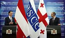 As foreign minister, Kurz assumed the yearly-rotating chairmanship of the Organization for Security and Cooperation in Europe (OSCE) in January 2017.[71][72][73][74]