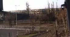 Ukrainian and separatist forces continued to exchange artillery fire. Amidst the continuing fire, a school and bus stop in the Kyivskiy district of Donetsk city, which neighbours the airport, were struck by shells on 1 October.[28][29] Ten civilians were killed, though no schoolchildren were harmed. According to Joanne Mariner of Amnesty International, it was "impossible to tell" who was responsible for the incident. She also said, however, that "residential areas have been hit by Ukrainian forces firing from the airport", and that DPR forces "also bear responsibility as they have been stationing artillery in residential areas and firing from there, in clear contradiction of the laws of war".[28] Concurrently, DPR forces supported by tanks began to advance into airport, and seized several hangars, a fuel storage area, and outbuildings. They used these buildings as artillery emplacements, and began to bombard Ukrainian positions from them. DPR forces continued to move forward, and captured the control centre, police station, and hotel, but could not advance further.[25] Mutual shelling continued on 2 October.[30][31] The situation, according to the Ukrainian government, was "difficult".[32]