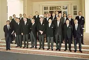 ![]() Governor-General Sir Paul Hasluck with first arrangement of newly appointed ministers to the Second Gorton Ministry | |