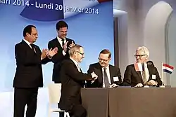 On 17 October 2014 Minister of Foreign Affairs Frans Timmermans (PvdA) resigned after he was nominated as the next European Commissioner succeeding Neelie Kroes.[4] He was replaced as Minister of Foreign Affairs by Special Representative of the Secretary-General for the United Nations in Mali and former Minister for Development Cooperation Bert Koenders (PvdA).[5]